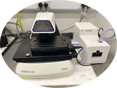The Invitrogen EVOS™ M7000 Automated Imaging System is a fully integrated inverted digital microscope designed for automated fluorescence and transmitted-light imaging. The platform combines multi-channel fluorescence capability with motorised stage control and advanced acquisition features, supporting both routine imaging and high-content live-cell experiments. It also serves as an effective first step for sample screening and optimisation before progressing to higher-end imaging systems.